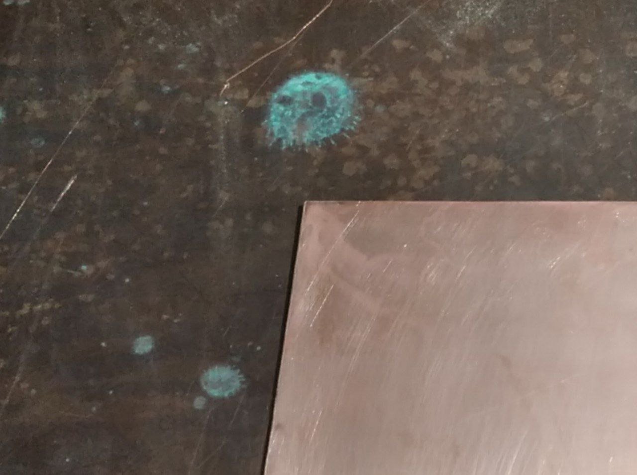 Трохи погуглів - рекомендують використовувати лимонну кислоту. Деякі подогрівають, деякі - кип'ятять. Але в мене такий шмат треба було почистити що ні в жодну кастрюляку не ліз. Зробив от що - поклав його у тазик, насипав кілька чайних ложок лимонної кислоти, узяв мокру ганчірку, капнув трохи води на кислоту на рівномірно розтер по стеклотекстолиту. Залишив на 15-20 хвилин.