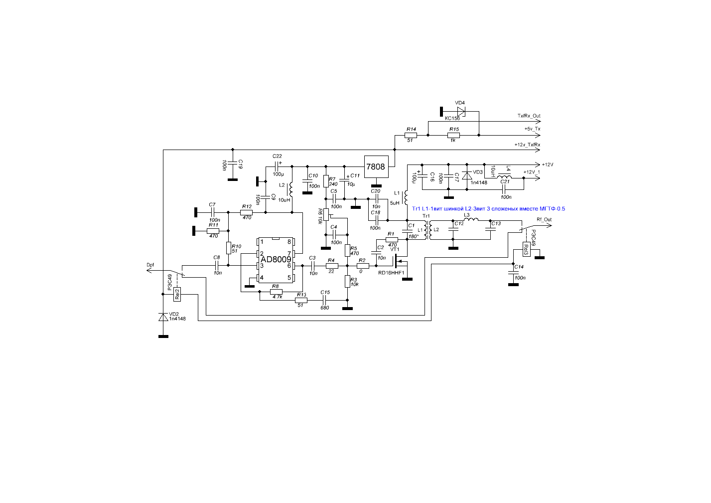 Рд16... використовував,плату трохи під себе переробляв..в трансформаторі амідон використовував....з мікросхемою все в порядку,просто якщо прийдеться збільшити коефіцієнт підсилення(а в моєму випадку було саме так) то треба звернути увагу на обв'язку Адешки інакше вона почне "співати"...підсилювач за цією схемою використовував з клонами сдр1000, мінієсом та тпп пілігрим....