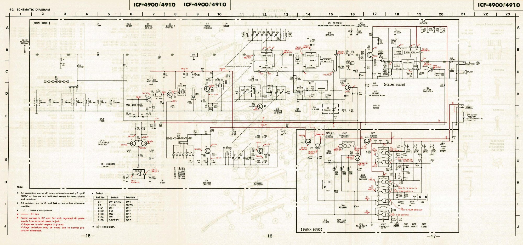 Так, досить усе просто, але цікаво розібратися з архітектурою. На ФМ це супер з ПЧ 10.7МГц. На СВ/ДВ теж супер з ПЧ 465кГц. Увесь функціонал реалізовано на одній мікросхемі CX20091 - зараз таку мабуть і не купити. Живлення 3в (дві батареї по 1.5в).